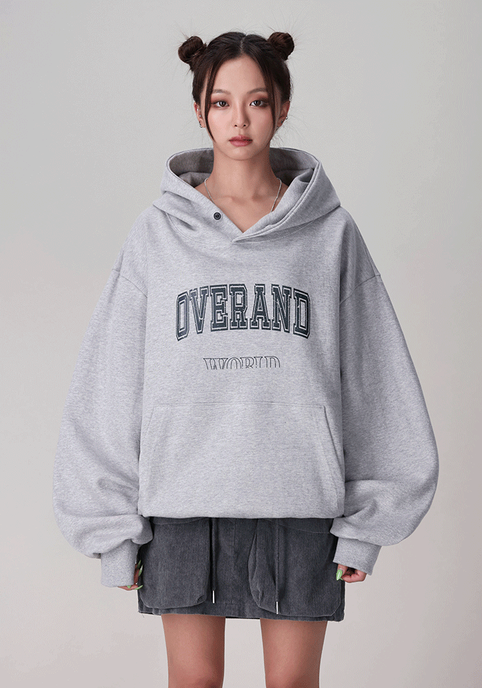- 오버앤 자체제작 메이드 기모 후드티입니다. - 깔끔한 레터링 디테일과 오버핏 실루엣으로 제작되었습니다. - 따뜻한 기모안감으로 보온성을 높여주었습니다. - 기존의 플라스틱 스냅버튼에서 내구성이 강한 금속 스냅버튼으로 변경하였습니다.