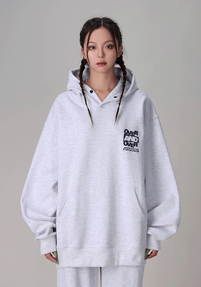 - 오버앤 자체제작 메이드 오버핏 기모 후드티입니다. - 워드 레터링 디테일로 포인트를 주었습니다. - 깔끔한 오버핏 실루엣에 기모안감으로 보온성을 높여주었습니다. - 기존의 플라스틱 스냅버튼에서 내구성이 강한 금속 스냅버튼으로 변경하였습니다.