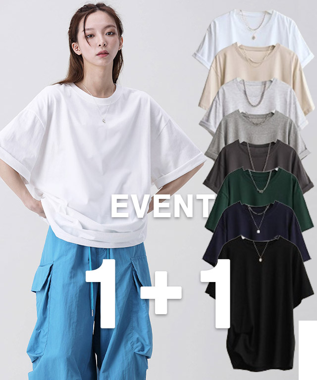 (1+1) 인기 3종 오버핏 무지 반팔 티셔츠 : 8color