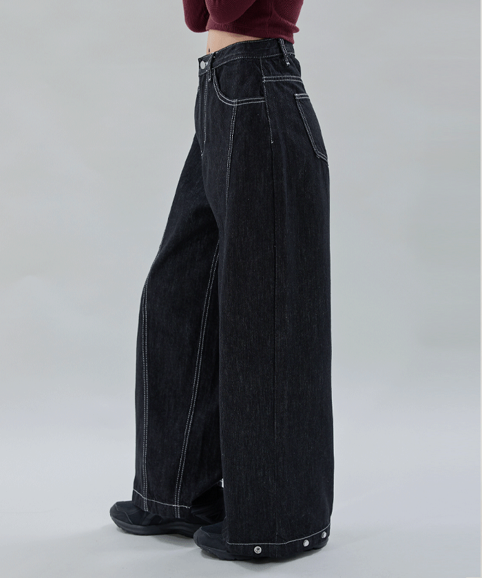 - 코튼 100% 논페이드 패브릭 - 전면 사선 절개 더블 화이트 스티치 - 밑단 스냅버튼 2-WAY 스타일링 가능 - 전면 미니포켓 실버 팁 포인트 - 오른쪽 힙포켓 블랙 라벨 디테일