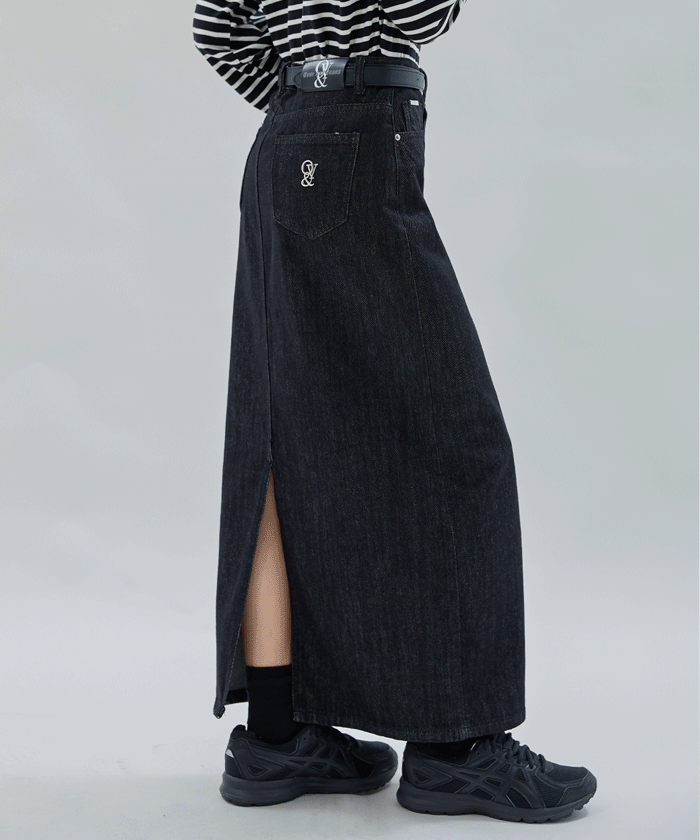 - 캐주얼한 논스판 생지 코튼 패브릭 - 프론트 미니 포켓 실버 팁 디테일 - 배를 안정감 있게 덮어주는 하이웨스트 - 오른쪽 힙 포켓 시그니처 메탈 로고 펜던트 - 실버 펜던트 투웨이 크롭 데님 자켓과 셋업