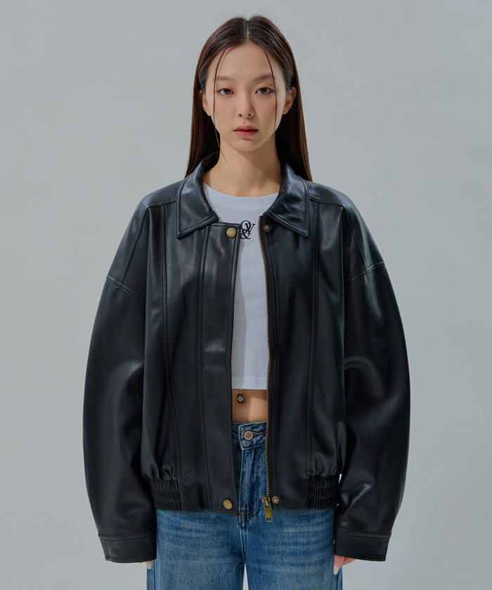 - 비스코스 혼방 비건 레더 패브릭 - 깔끔하고 단정한 무드의 카라넥 - 지퍼+스냅버튼 이중 잠금 디자인 - 실용성 있는 사이드 포켓 디테일 - 밑단을 잡아주는 사이드 밴딩 시보리
