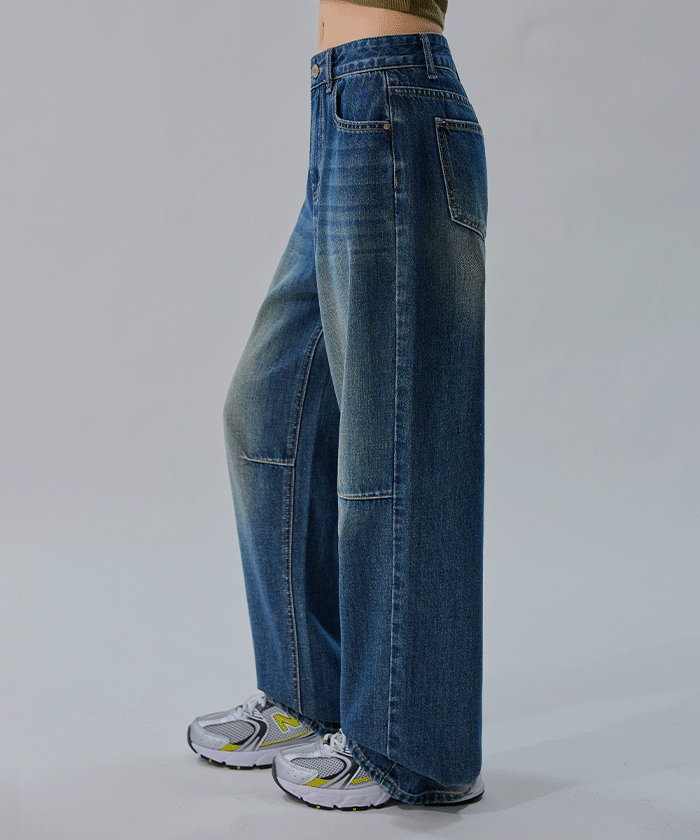 - 사계절 코튼 100% 패브릭 - 트렌디한 빈티지 워싱 - 무릎 가로 절개 핀턱 - 시그니처 로고 가죽택 - 미니포켓 실버 팁 포인트