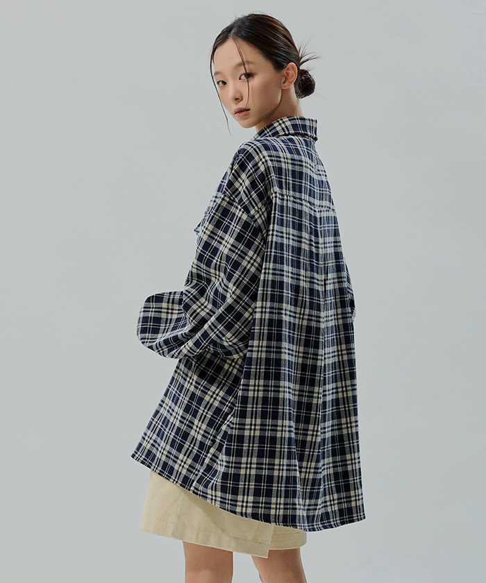 [MADE] 실버 홀버튼 오버핏 체크 셔츠